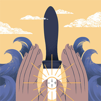Get started: Slowly and carefully insert the shaft until it sits comfortably inside you. Start it up. |