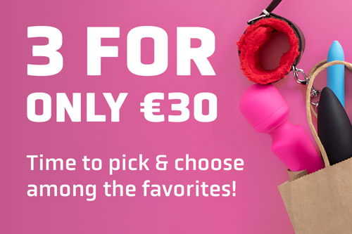 Welcome to our 3 for 30 category of sex toys for women, men and couples. Here we have collected some of our most popular products and you will never pay more than €30, regardless of which three you choose.