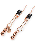 Adjustable and rosegold nipple clips with delicious pearls for an exclusive look.