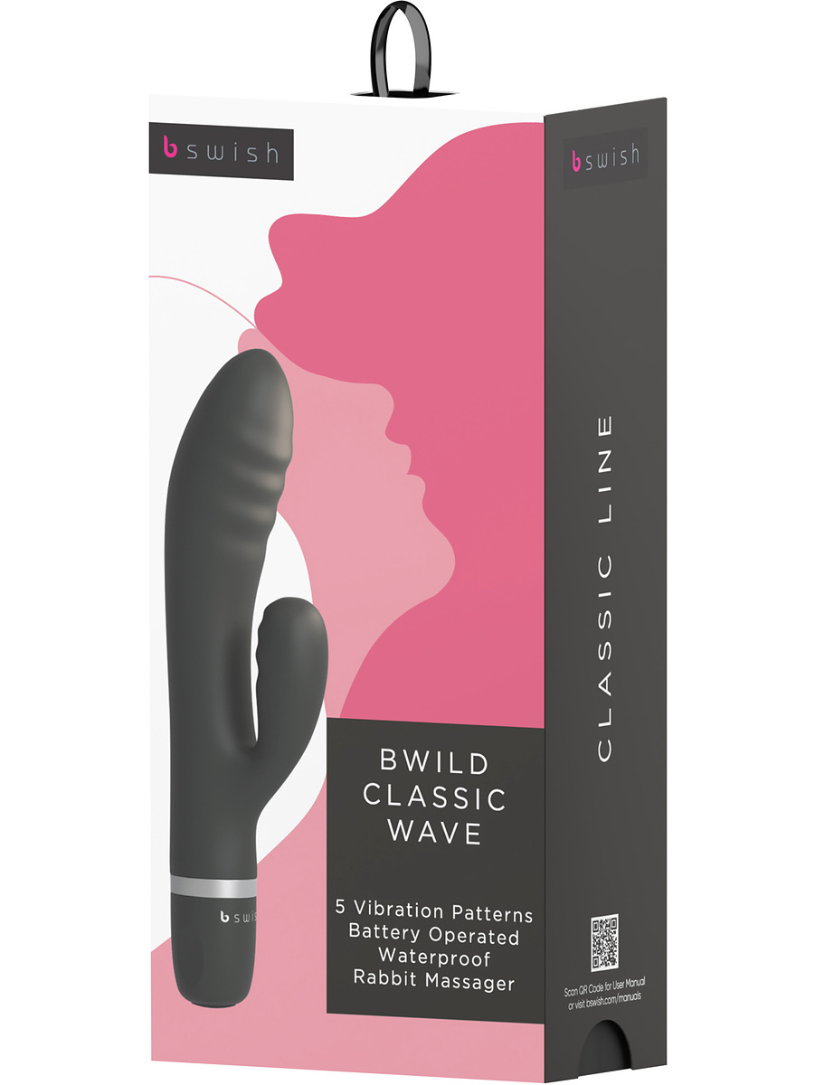 Bwild Classic Wave is a small rabbit-vibrator for a lovely stimulation of your G-spot and clitoris. On the curved shaft and on the clitoris stimulator there are soft, wavy contours that provide extra pleasant stimulation together with the vibrations.