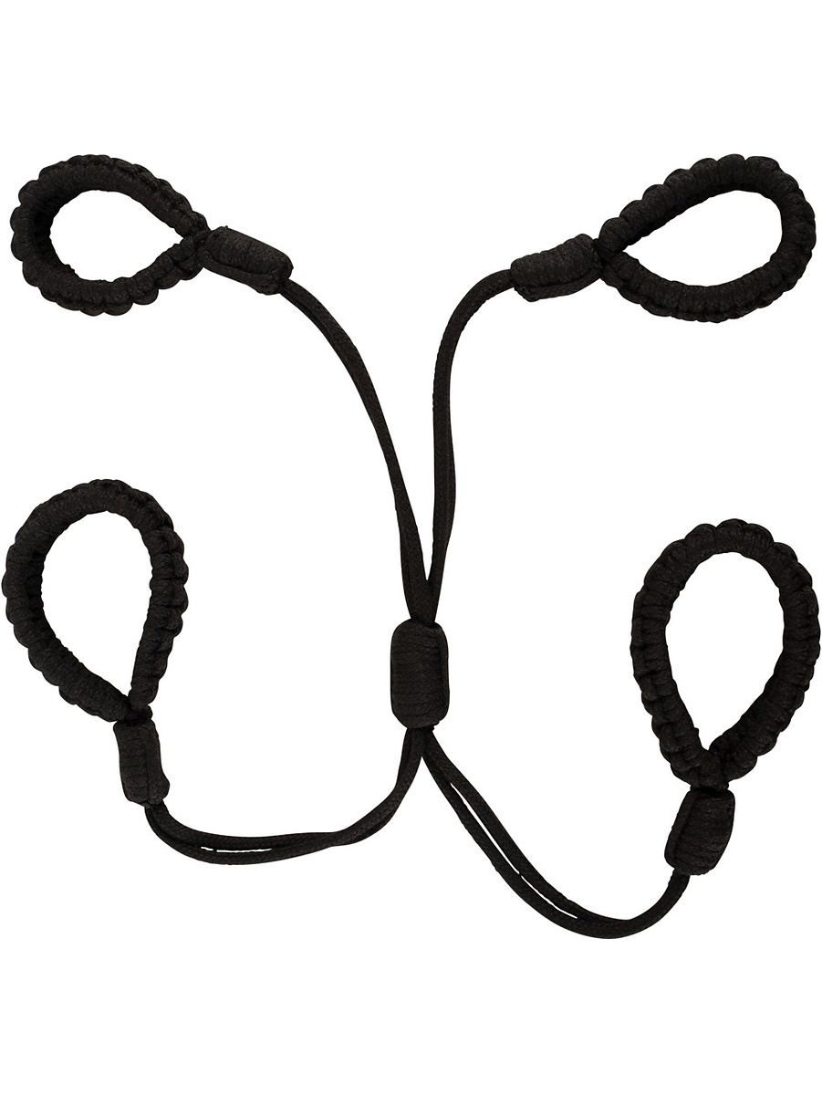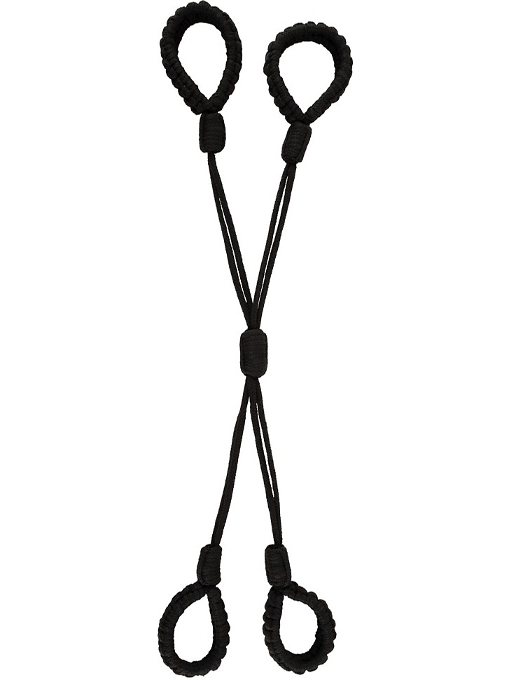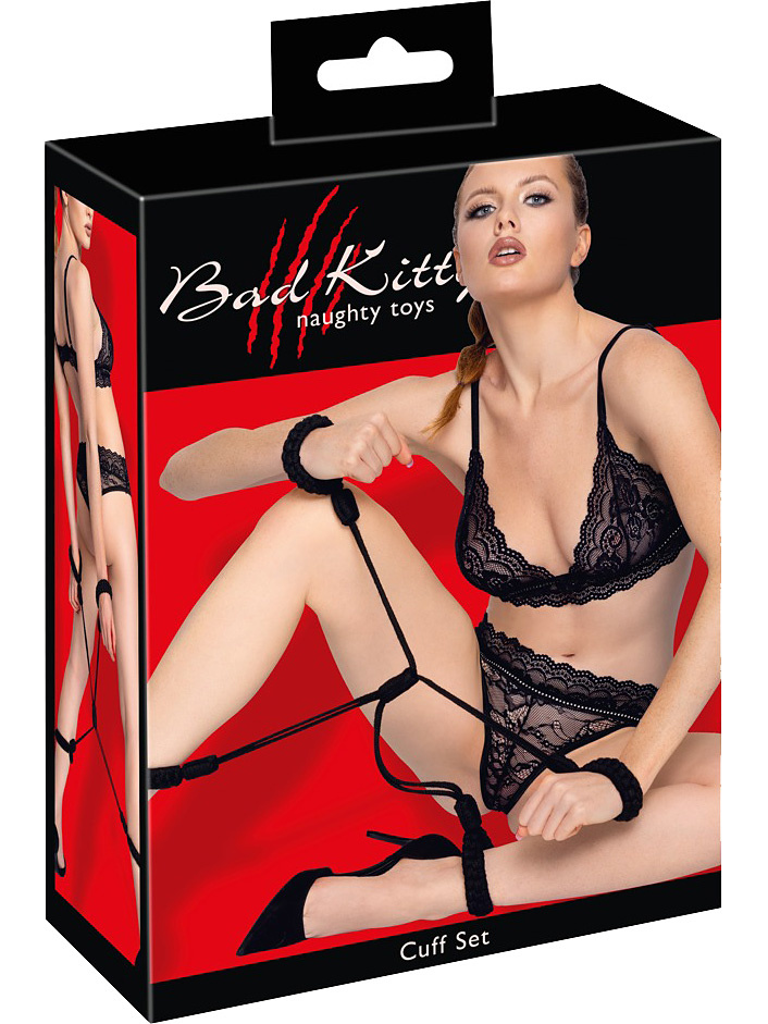 Cuff Set Rope from Bad Kitty consists of a peasant cross with loops for hands and feet. The shackles are made of soft, twisted cotton-ropes. They are easy to put on and can adjust to your wrists and ankles thanks to the movable knots. Perfect for bondage-beginners!
