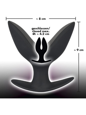 A special butt plug that you, before penetration, press together. Once inside, it will strive for its natural shape and then apply a pressure from the inside. It makes the experience more intense and will be like nothing else you have felt before.