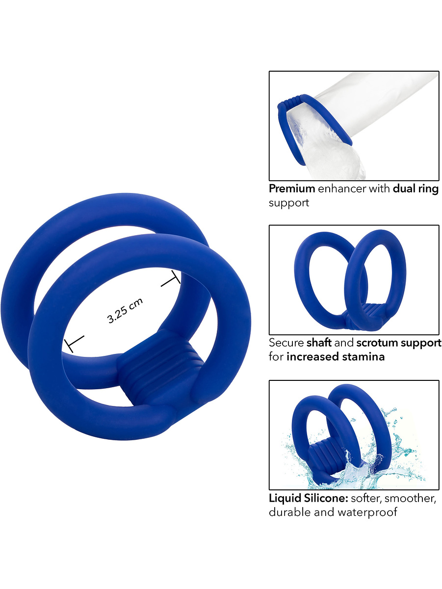 This is an effective cockring with double rings that enhances the erection and provides optimal support. The stretchy, flexible and robust ring is designed to increase endurance, improve sensitivity and provide superior erection support. Place one ring around both penis and scrotum and the other around just the penis to look forward to explosive pleasure as the comfortable rings embrace.