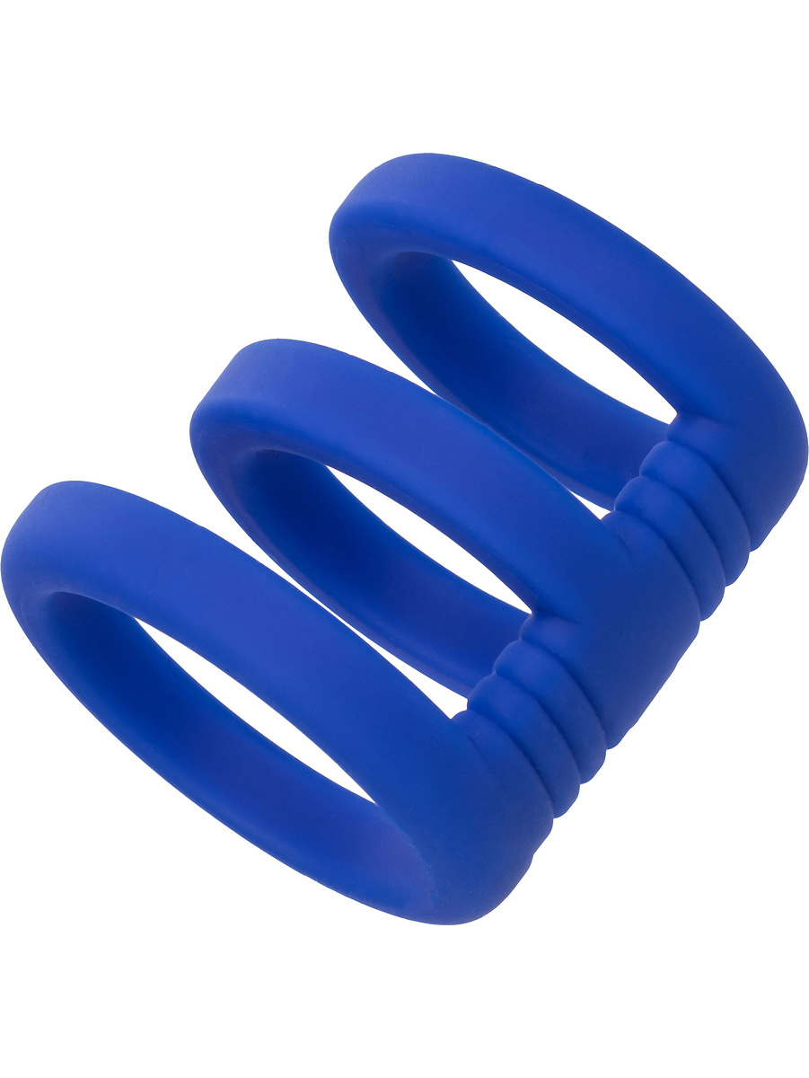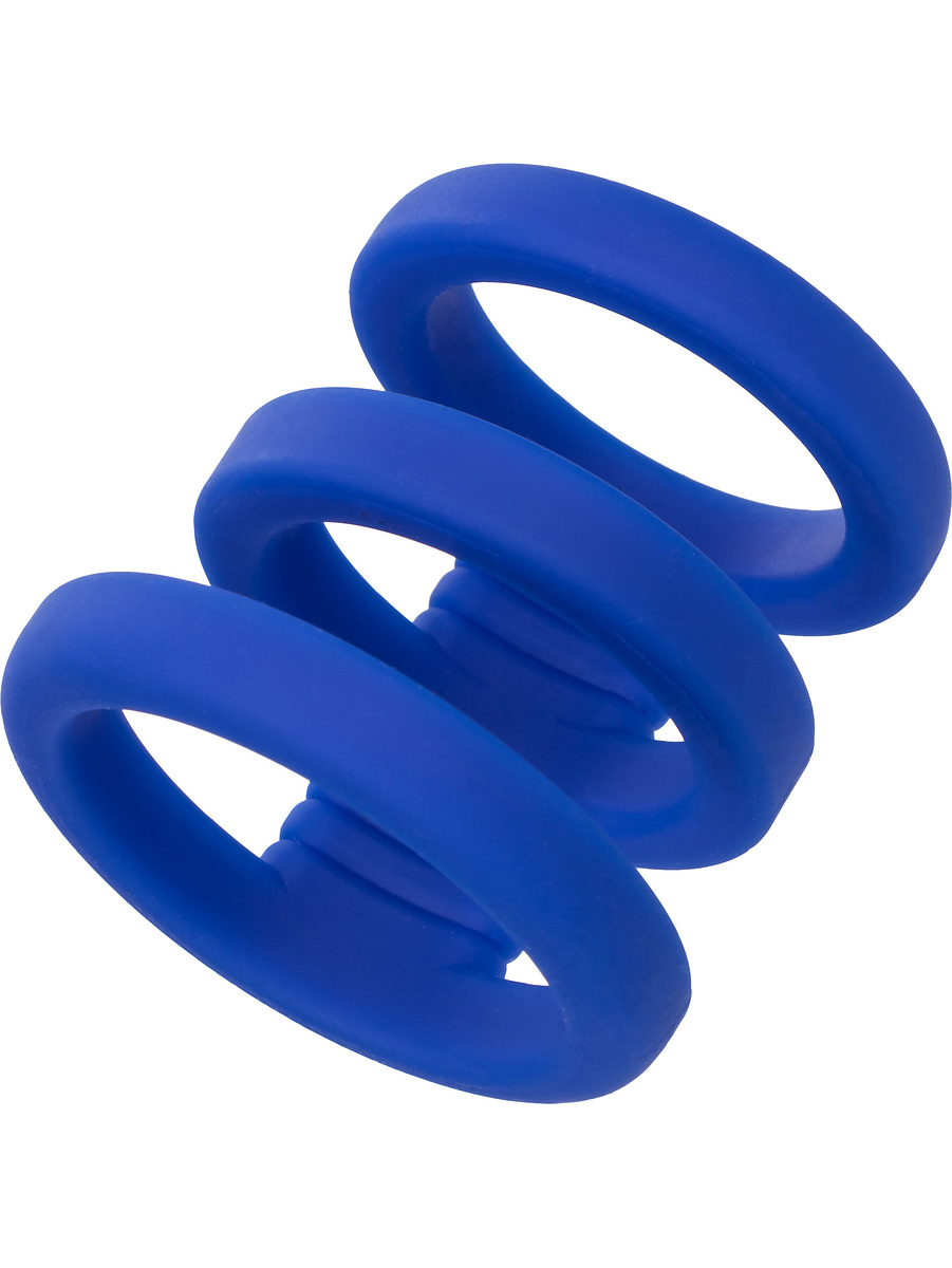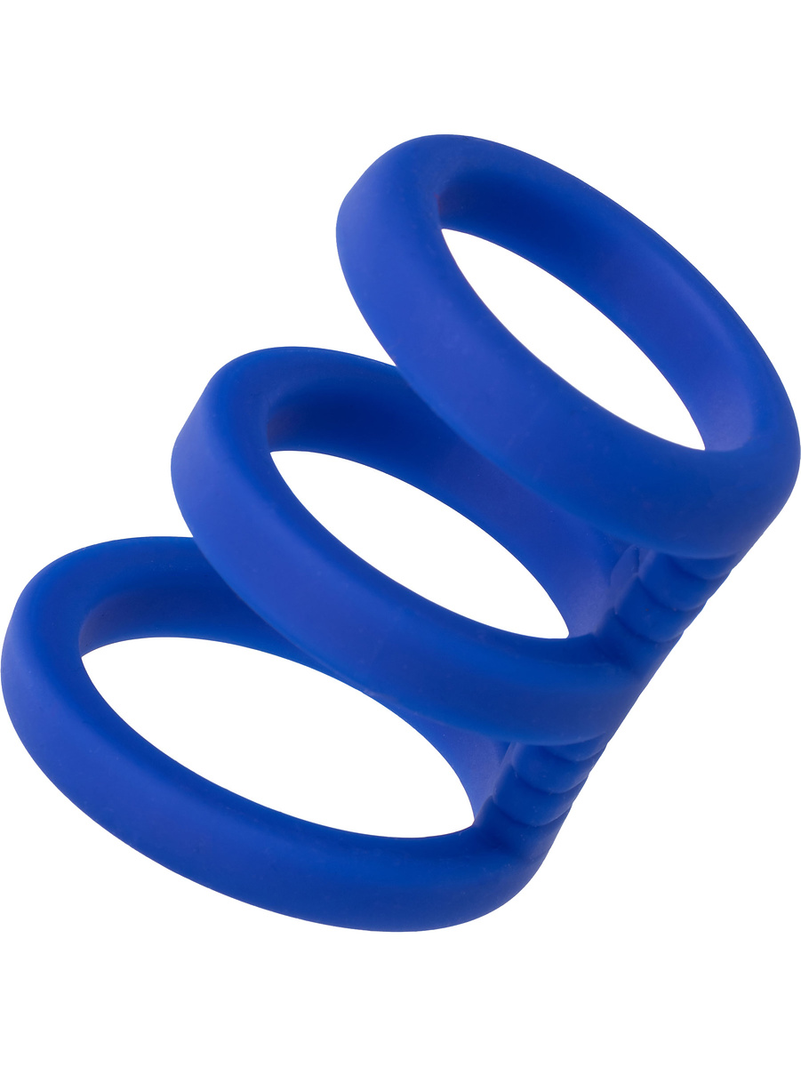 This is an effective cockring with triple rings that enhances the erection and provides optimal support. The stretchy, flexible and robust ring is designed to increase endurance, improve sensitivity and provide superior erection support. Place one ring around both penis and scrotum and the other two around just the penis to look forward to explosive pleasure as the comfortable rings embrace.