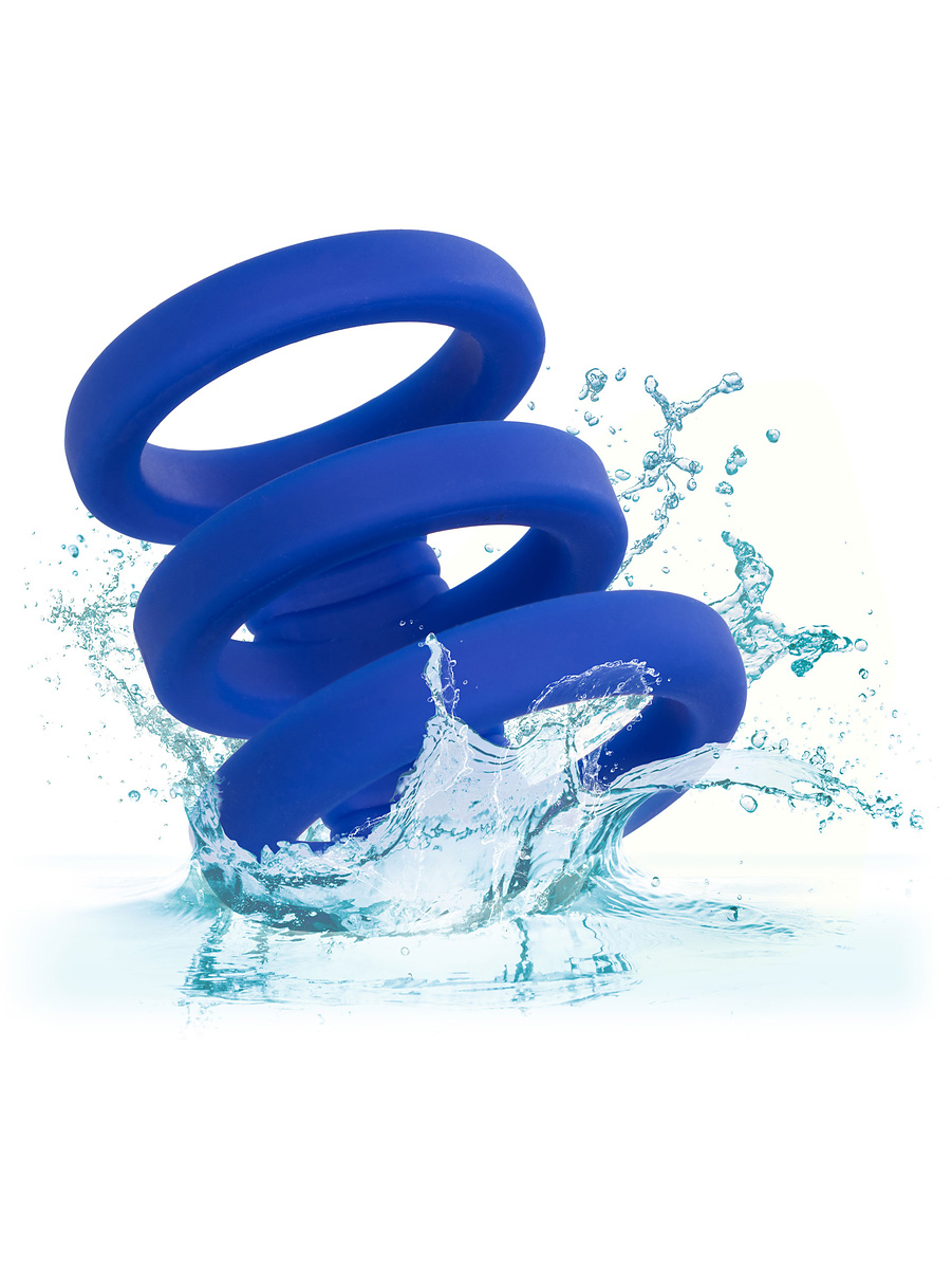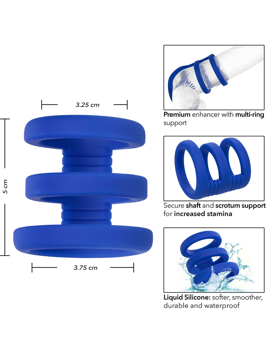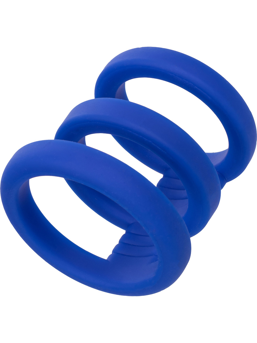 This is an effective cockring with triple rings that enhances the erection and provides optimal support. The stretchy, flexible and robust ring is designed to increase endurance, improve sensitivity and provide superior erection support. Place one ring around both penis and scrotum and the other two around just the penis to look forward to explosive pleasure as the comfortable rings embrace.
