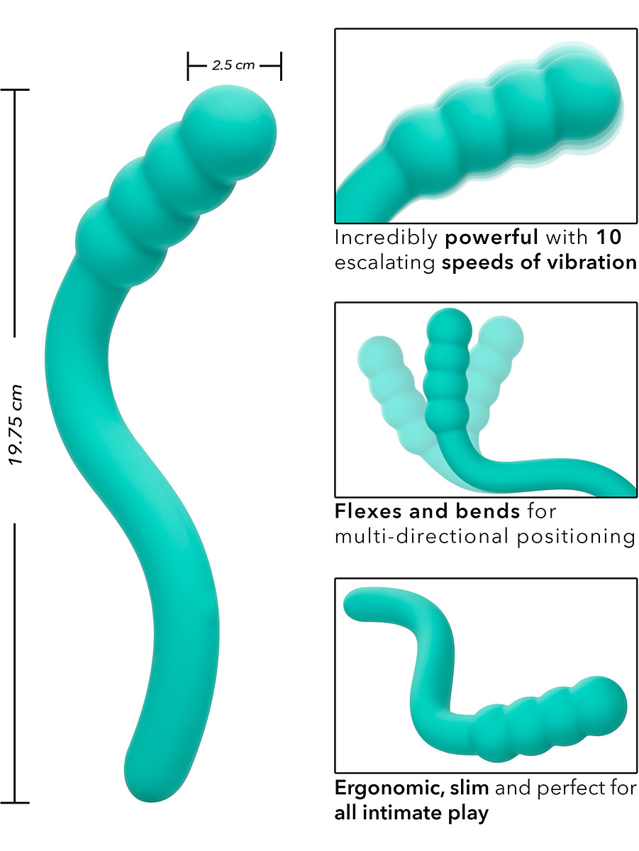 One end is smooth while the other has a bead-shaped design. Thanks to the flexible and bendable design, you can bend it into a perfect position so it hits just the right points. Enjoy alone or take your partner on an adventure.