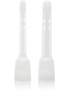 Fill the flexible container with lukewarm water, attach one of the two included nozzles and insert it carefully into the anus. Then press the container lightly to rinse clean. The two nozzles have different diameters (1.0 cm & 1.5 cm), so you can choose the size that feels most comfortable. For an extra thorough cleaning, the nozzles are equipped with holes on the sides, which distributes the water evenly.