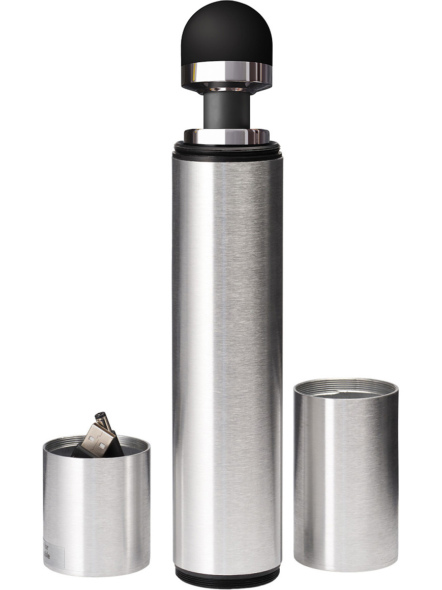 Your Doxy Die Cast 3R can be fully charged in just four hours with the included USB-cable. When the red light on the power button stops flashing, it's ready to give you up to an hour of enjoyment on the highest setting. Keep in mind that it is not waterproof.