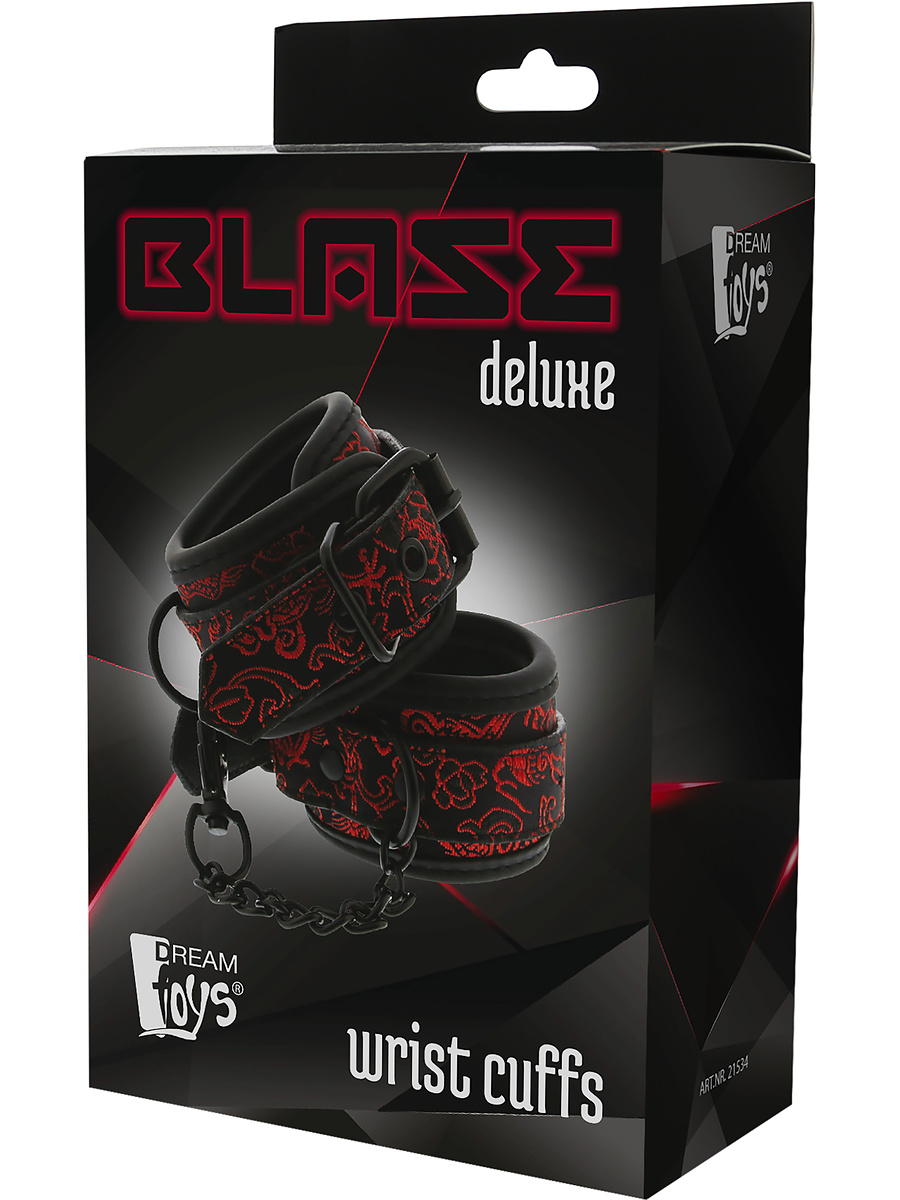 Looking for cuffs that combine elegance, comfort, and function? Blaze Deluxe Wrist Cuffs are black cuffs with red floral patterns that not only look exclusive but are also durable and comfortable – perfect for intense play.