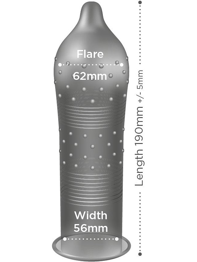 Ribbed & Dotted is a condom with both studs and grooves for extra stimulation. The condom also has a flared and comfortable fit with a container at the far end that catches your ejaculation.
