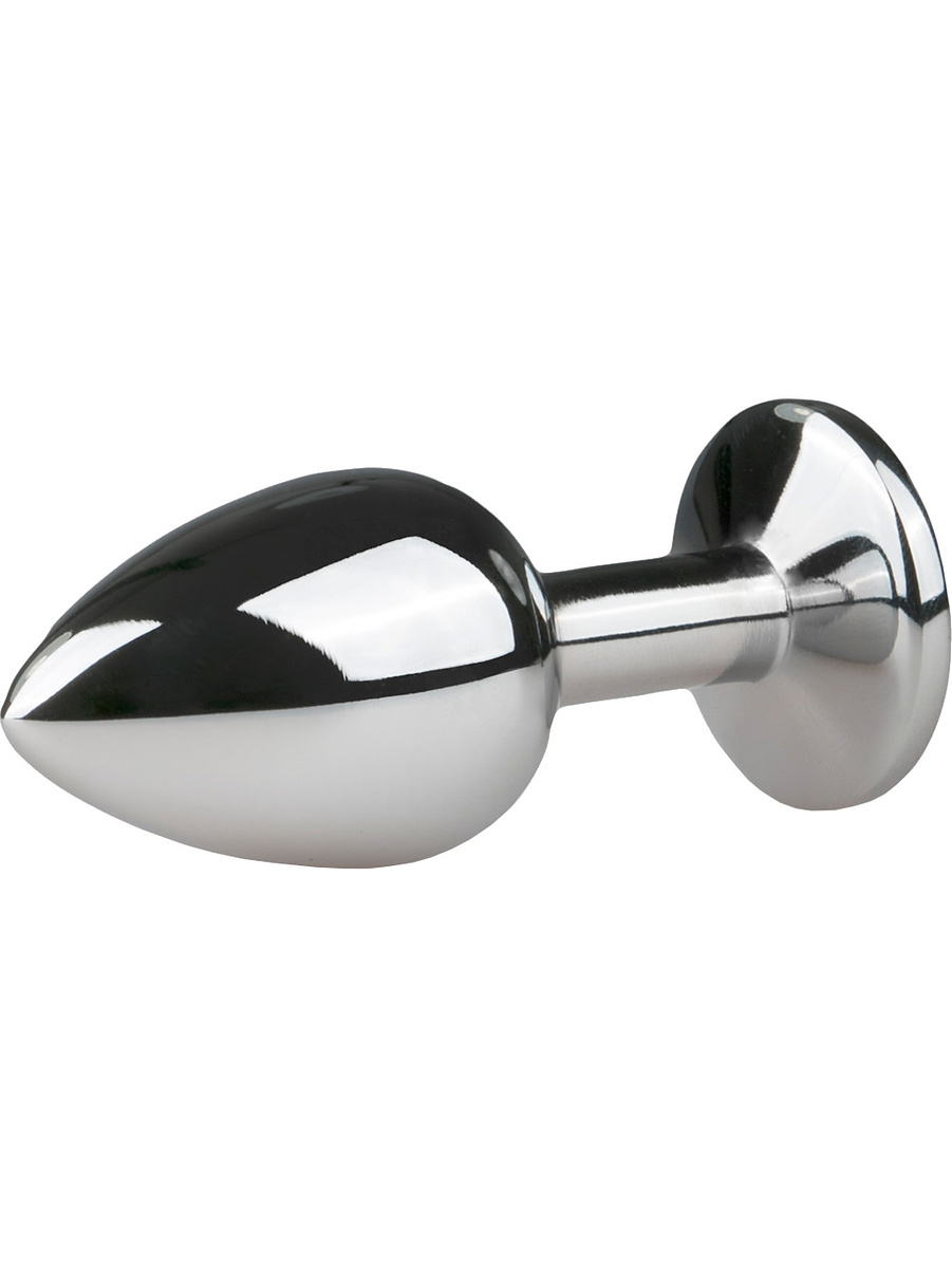 This stunning butt plug in polished aluminum has a beautiful, transparent crystal in the base for a luxurious look.