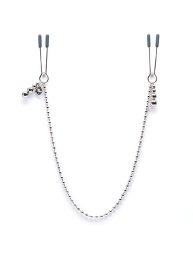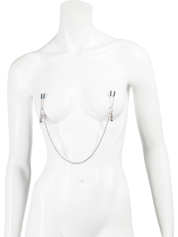 These sleek clamps attach easily to your nipples and apply a pleasant pressure that quickly enhances sensitivity. The chain between the clamps serves as both a sensual adornment and a tool for added stimulation – gently tug on it during play to heighten the tension and excitement.