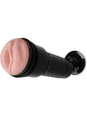 It is simply a large suction plug that is attached to the rear of a Fleshlight and then to any flat surface, e.g. somewhere in the bathroom. It is stable and secure, and the angle can be adjusted just as you want it.