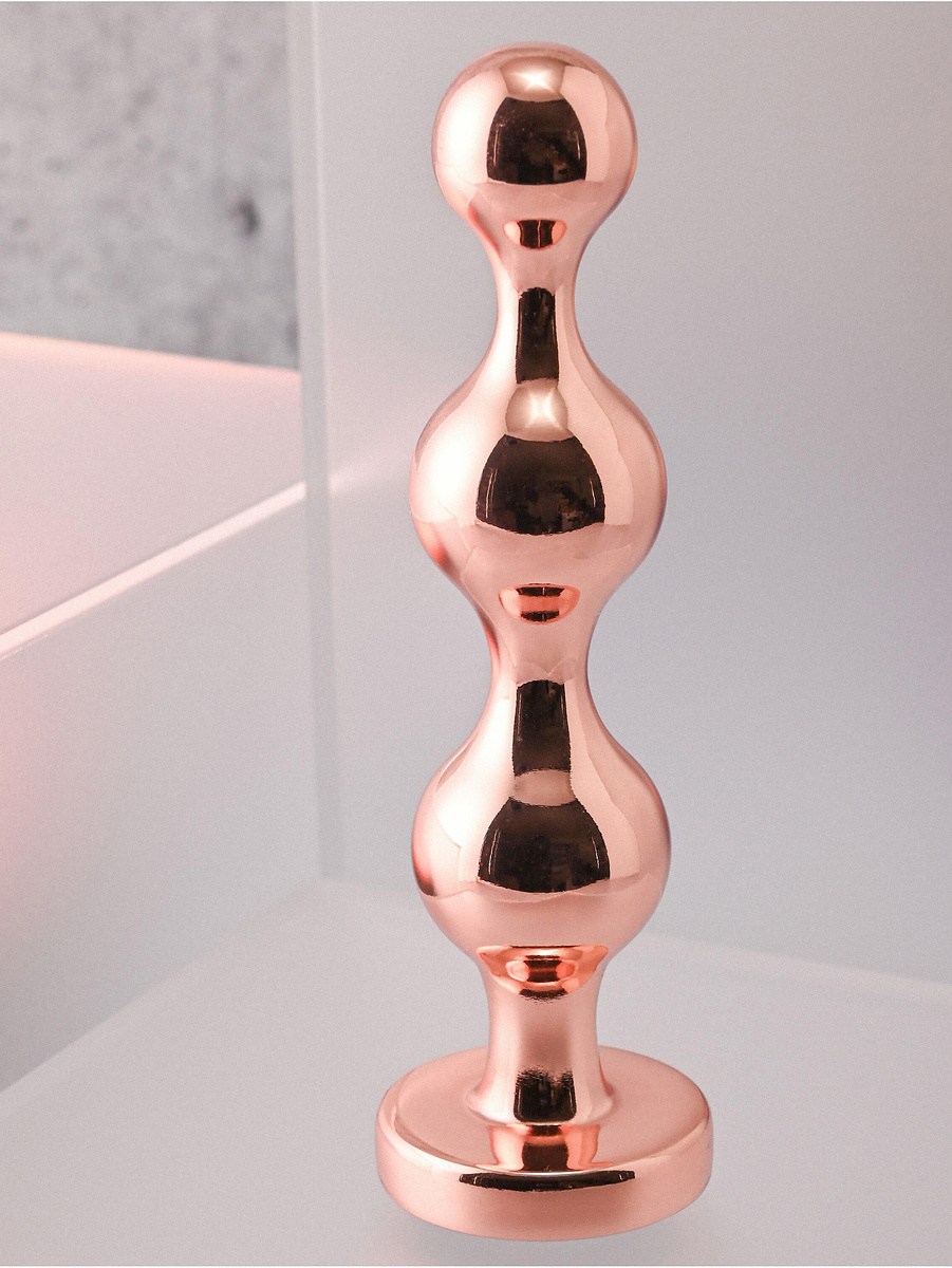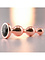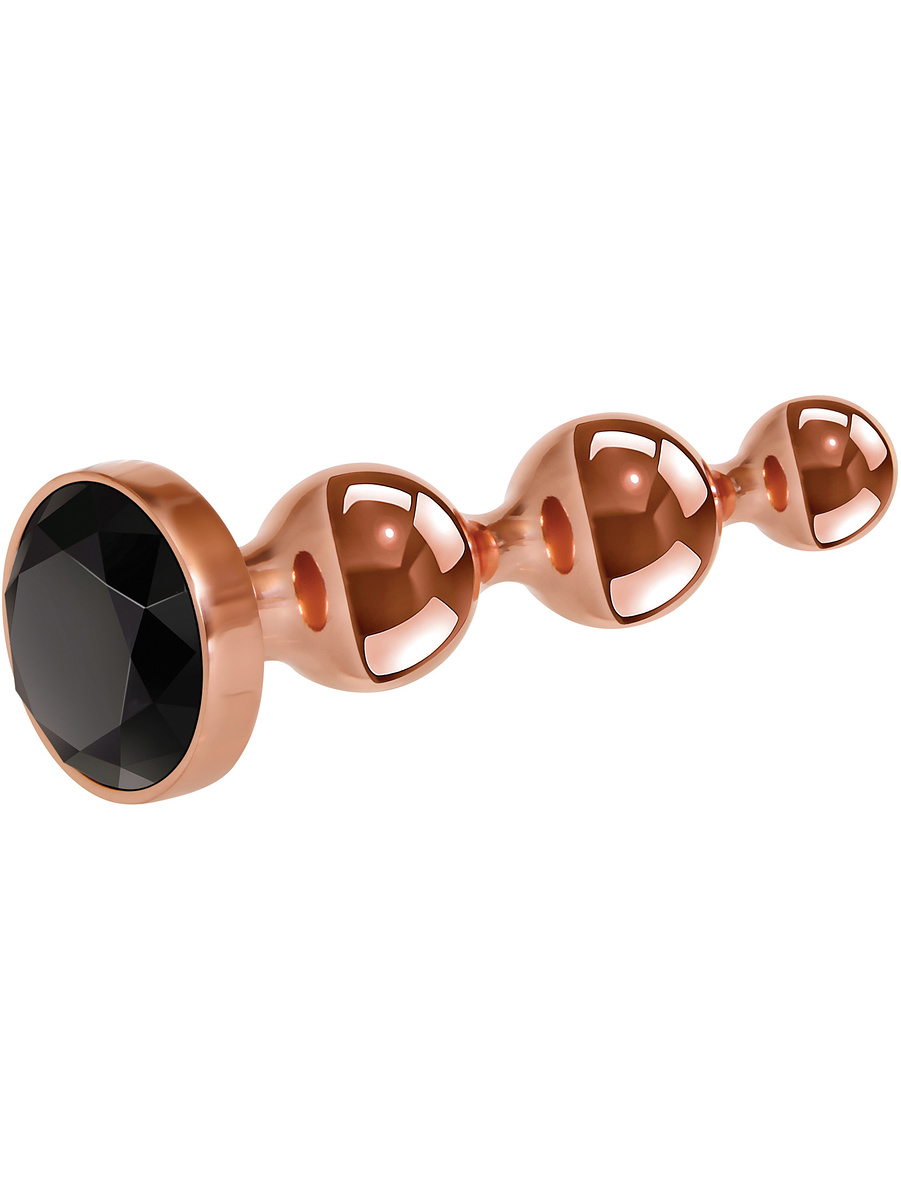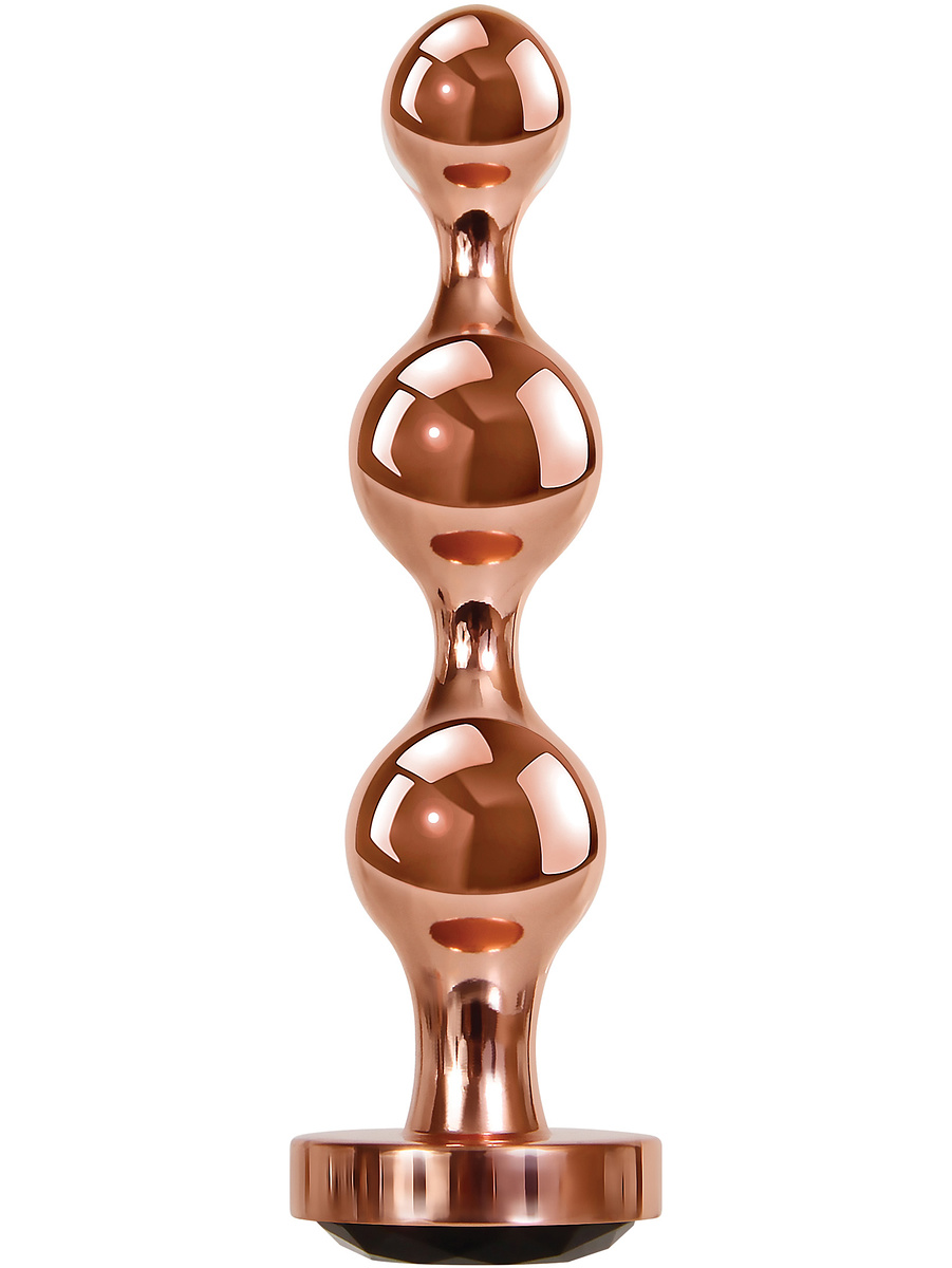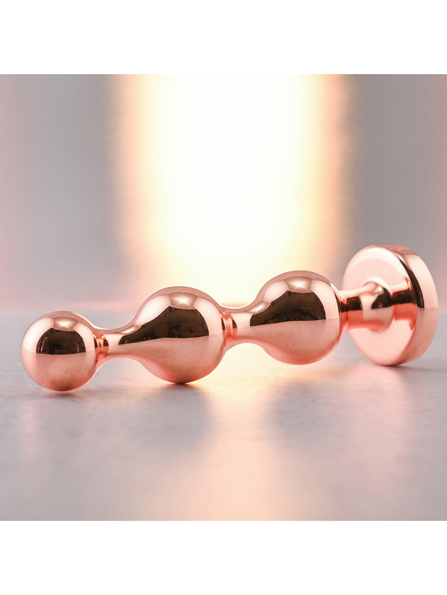 All plugs have a shiny shaft in rosegold aluminum-alloy. Along the shafts there are three beads in order of size that provide a comfortable insertion together with lubricant. Thanks to the metal, you can also try heating or cooling the plugs in water for temperature-play that can increase your pleasure.