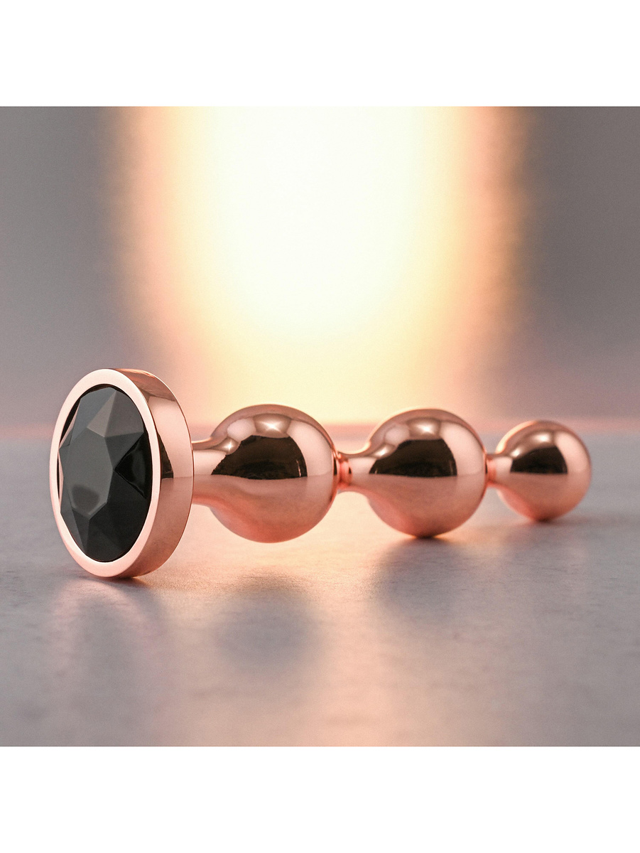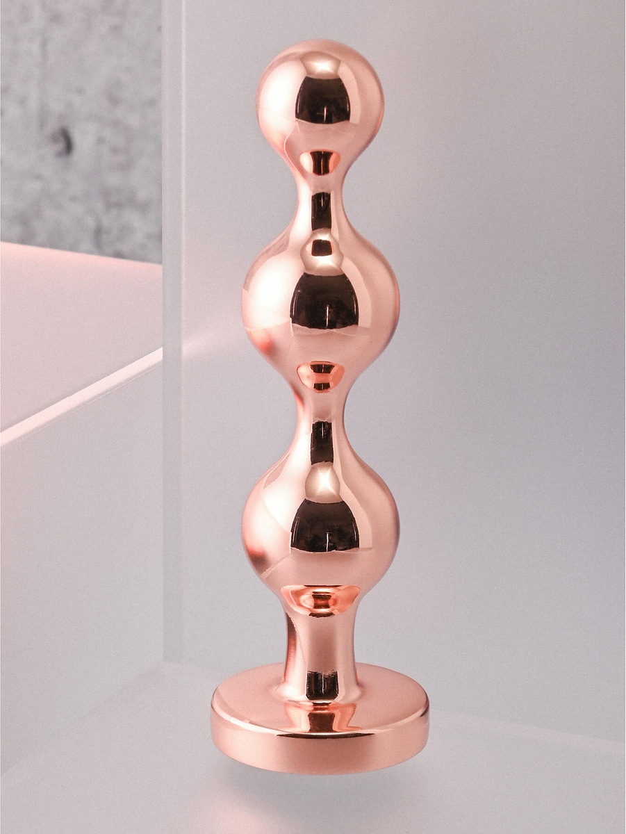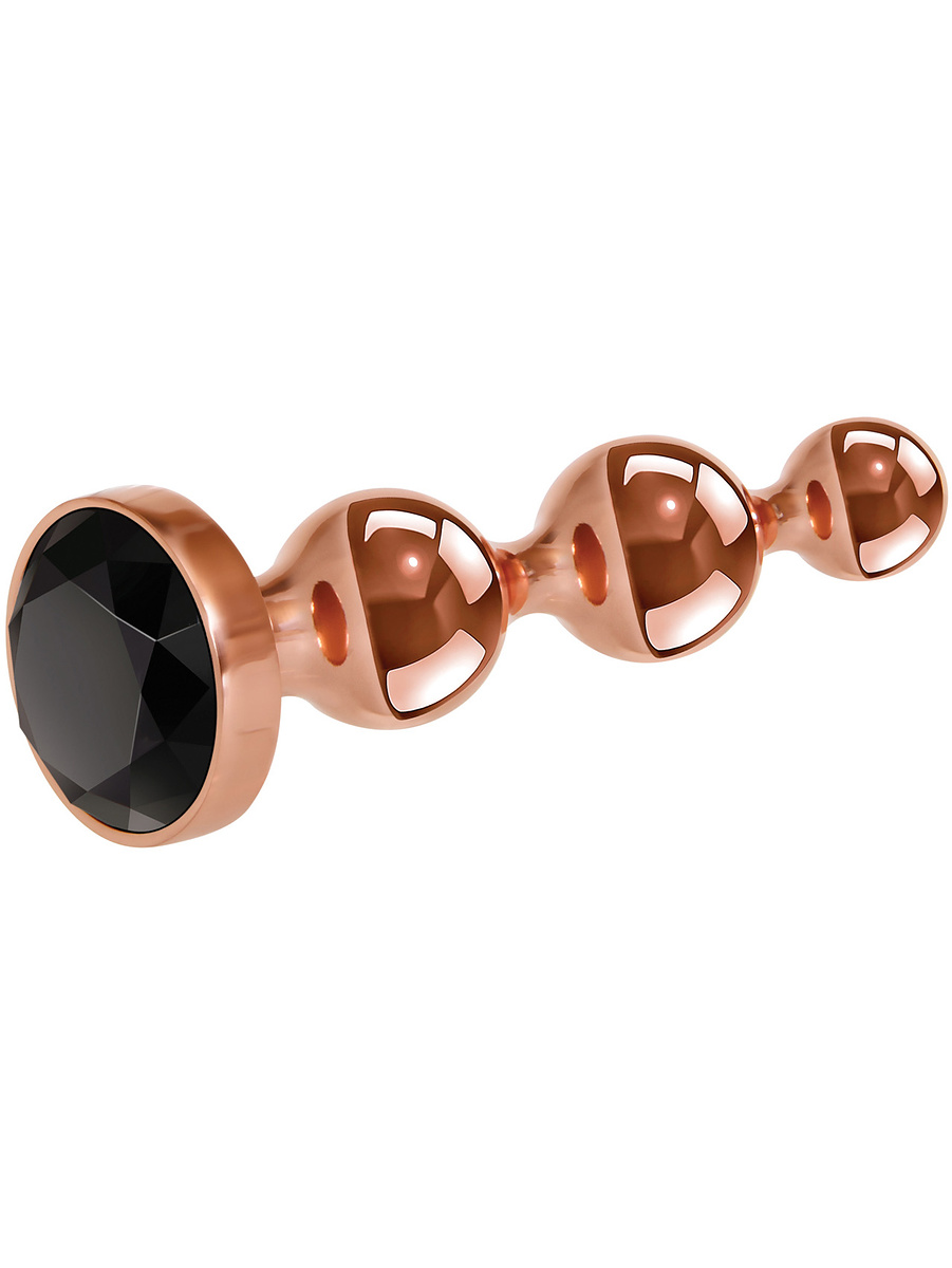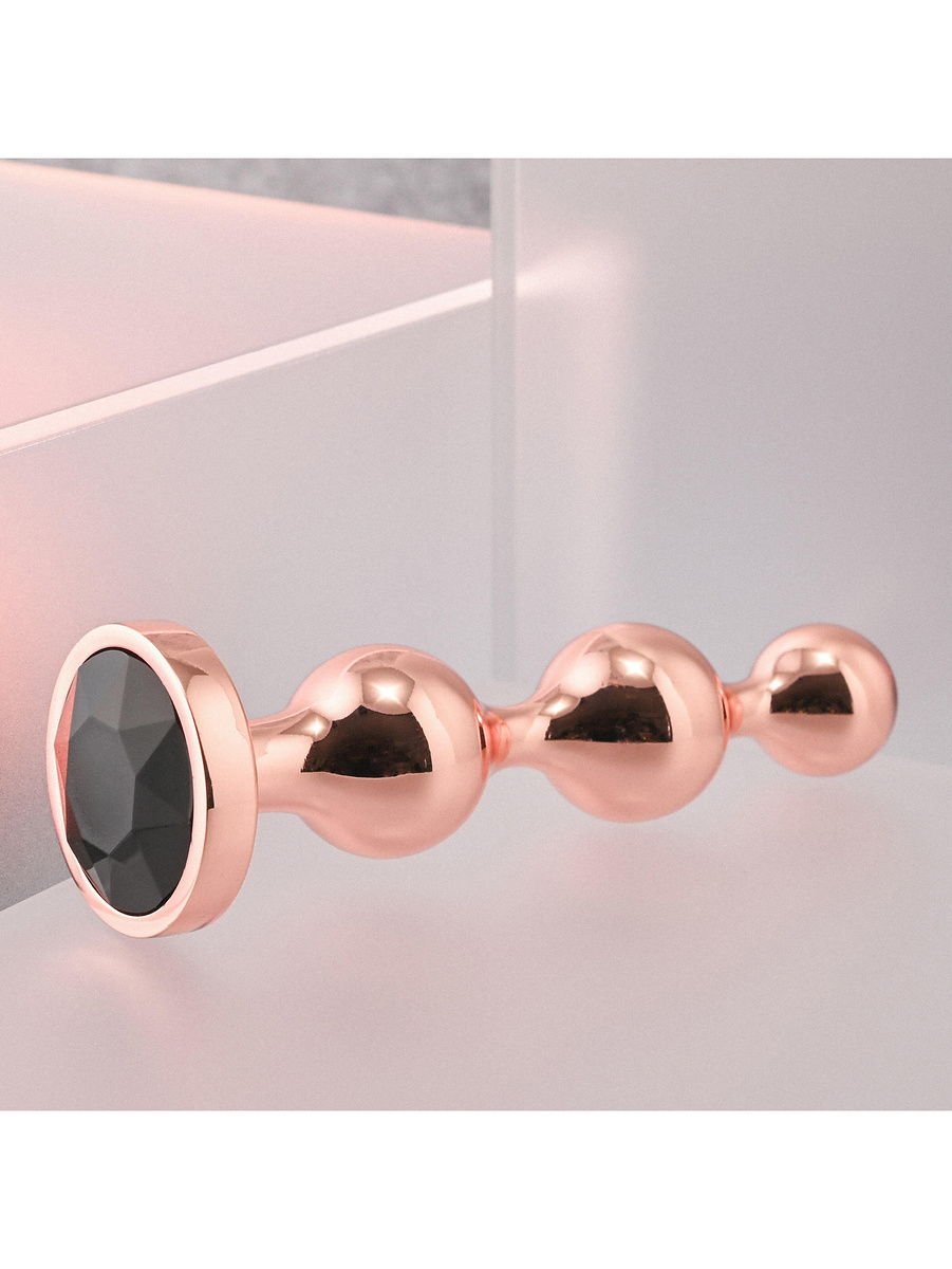 All plugs have a shiny shaft in rosegold aluminum-alloy. Along the shafts there are three beads in order of size that provide a comfortable insertion together with lubricant. Thanks to the metal, you can also try heating or cooling the plugs in water for temperature-play that can increase your pleasure.