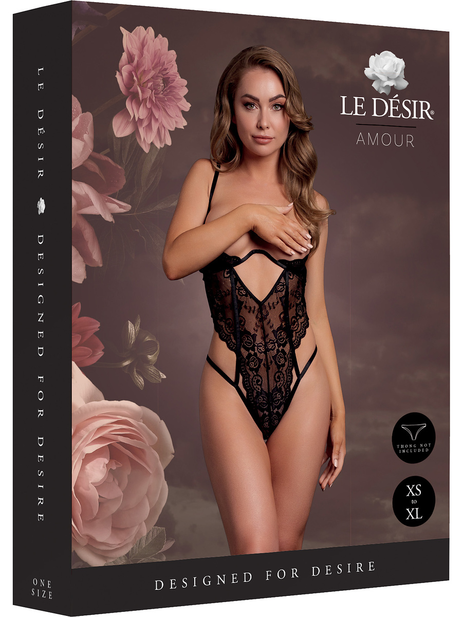 Le Désir Lace Underwired Open Cup Bodysuit, One Size