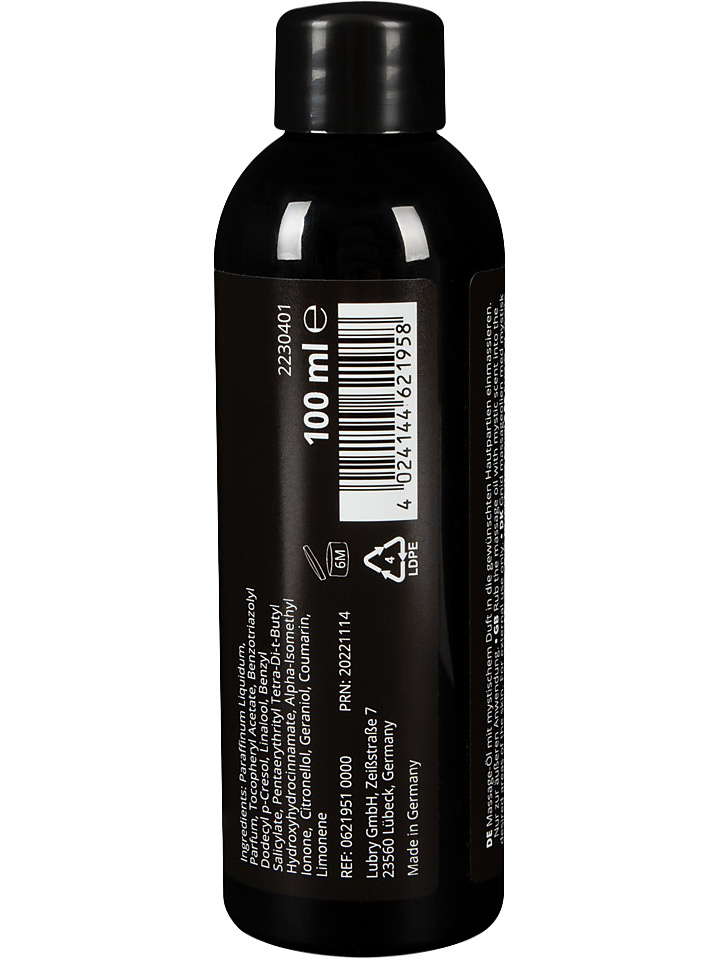 The massage oil contains high-quality ingredients such as Indian, nurturing almond oil that makes the skin silky-smooth and supple for a long-lasting and pleasant massage.