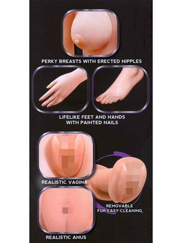 Camilla features a slim body with full breasts, long blonde hair, and green eyes framed by painted lashes. Her hands and feet are detailed with beautifully polished nails. You can choose to enjoy her vagina or tight anus – both with a soft, textured interior for a pleasurable, lifelike sensation.