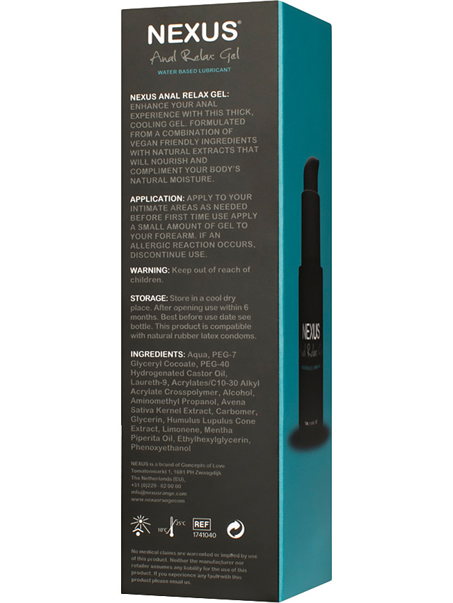Nexus Anal Relax Gel is a water-based lubricant with a slight cooling effect that provides ultimate relaxation and more pleasure during anal sex and anal-play.