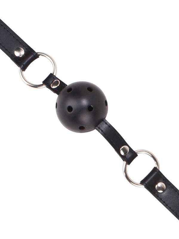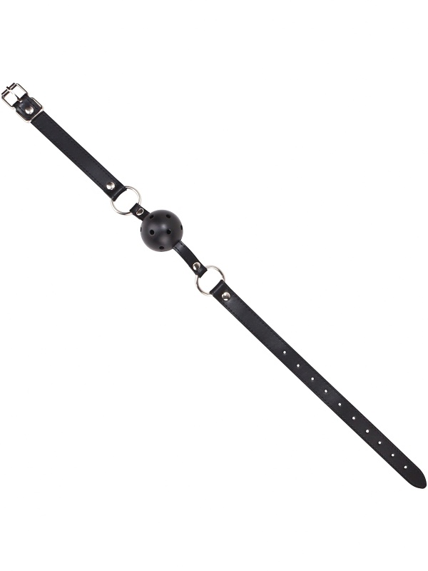 - Hard plastic gag ball with ventilation-holes for easier breathing