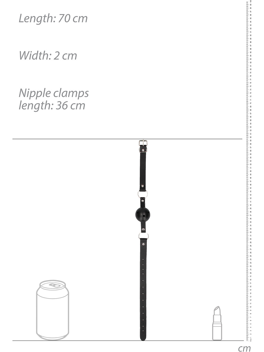 Breathable Ball Gag with Nipple Clamps - Enter a new world and make your fantasies come true.