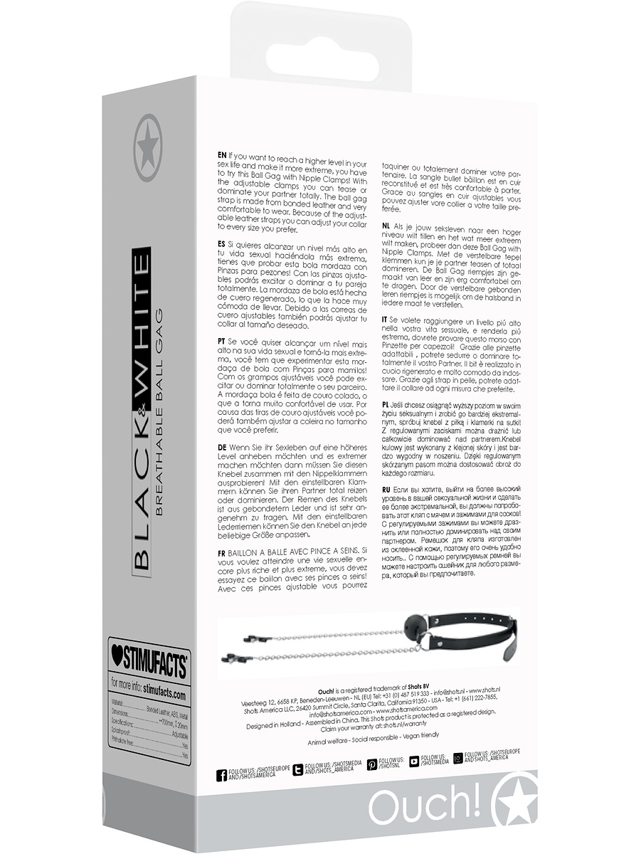 Ouch! Breathable Ball Gag With Nipple Clamps