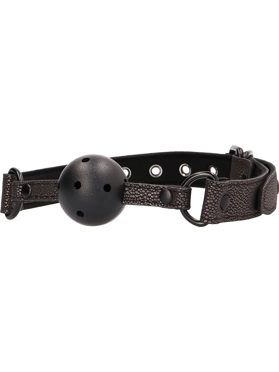 This is a fully adjustable Gag Ball that silences your partner and leaves all power in your hands. The ball has a breathing hole, which facilitates the breathing itself without reducing the intensity of the experience.