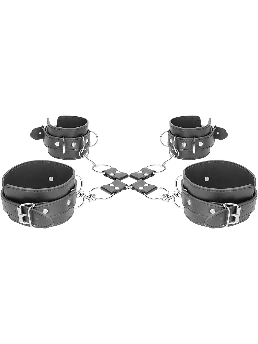 - Complete set of handcuffs, ankle cuffs and hogtie coupling
