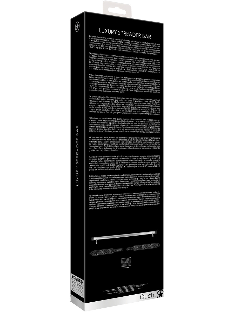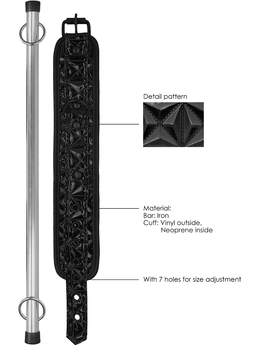 This is an exclusive Spreader Bar that keeps your partner's legs apart so you have free access to the most intimate parts during erotic play. The sturdy metal rod is approximately 40 cm long and has two metal rings at the ends where you attach the included foot shackles using carabiners.