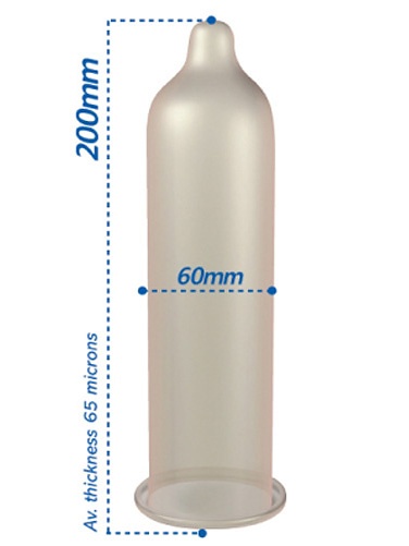 These condoms have a nominal width of 60 mm and are about 10% larger than other Pasande condoms and considerably longer. If a normal condom is too tight or uncomfortable to roll off, a wider condom is often a good solution.