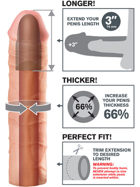 Made from soft, bodysafe Fanta Flesh, X-Tensions Mega feels incredibly lifelike against the skin – for both you and your partner. The material is flexible and adaptive, offering a comfortable and secure fit during use. You can easily trim the base for a perfect custom fit to match your body.