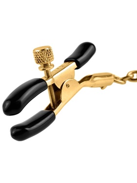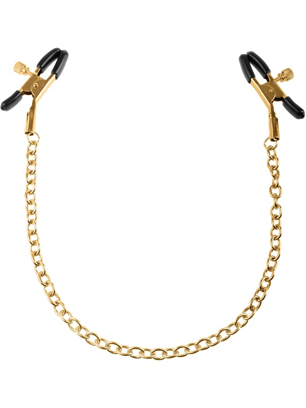 The nipple clamps are fitted with rubber-coated tips for a comfortable feel, even during extended use. As you move, the gold chain swings between the clamps, adding extra stimulation with each motion. With the small screws on the side of each clamp, you can easily adjust the pressure – from light tingles to a firm grip – for exactly the level of intensity you're looking for.