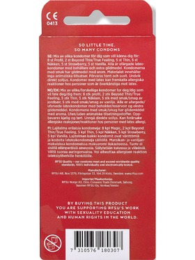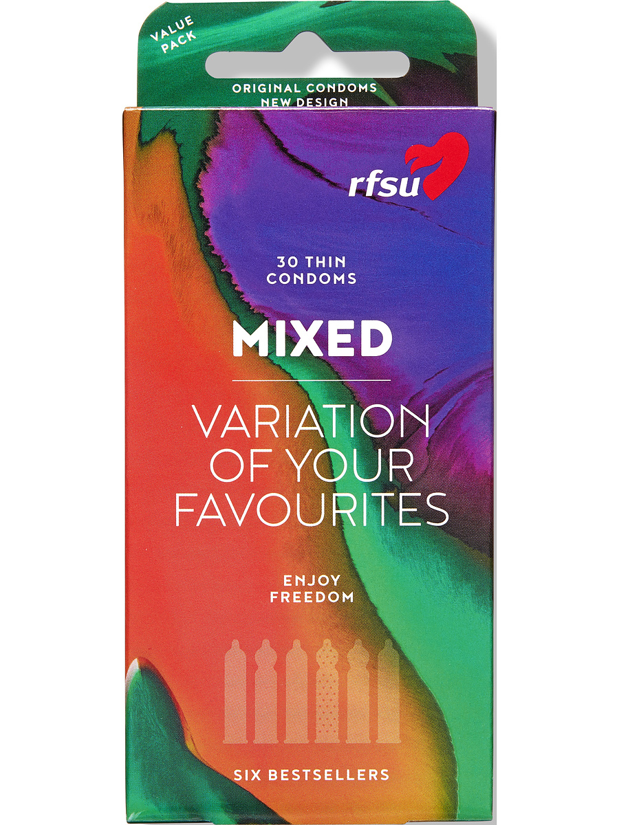 RFSU Mixed (formerly Mixpack) is a collection of 6 different types of condoms, so you can vary and find your own favorite in the condom jungle.