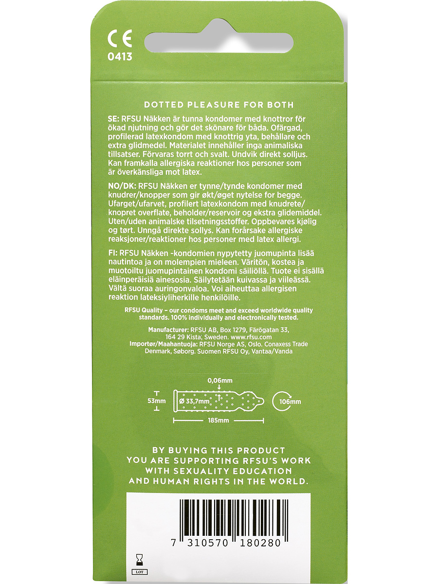 Näkken is a slightly thinner condom full of knots that increase the pleasure for both of you. In this way, you get both protection and increased feeling during sex.