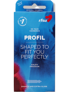 Are you looking for a condom that fits perfectly and enhances pleasure? RFSU Profil is Sweden's most popular condom, designed to provide a natural feeling and optimal fit. With its tailored shape and curved top, a tighter fit is created that increases sensitivity and intensifies the experience.
