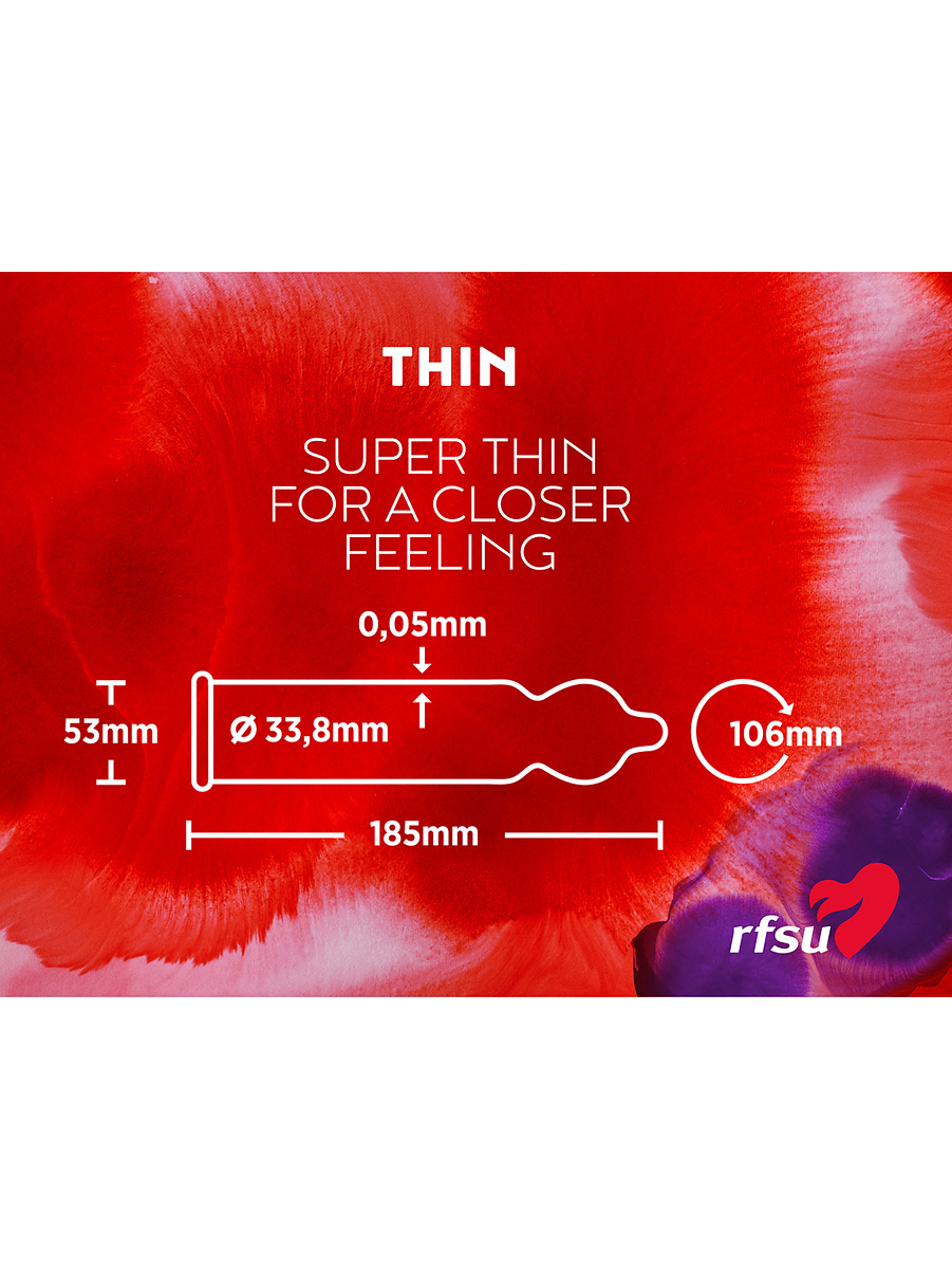 Do you want a condom that feels as natural as possible? RFSU Thin is extra thin and equipped with plenty of lubricant, which provides a feeling that is as close to unprotected sex as possible – without compromising on safety.