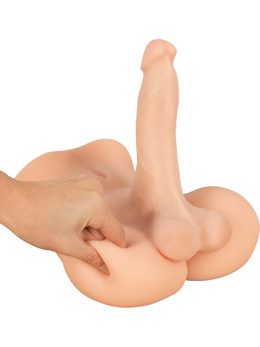This torso masturbator is made of the lifelike and skin-like material NatureSkin, which makes it look realistic and feel real. The penis with its marked glans, pulsating veins and textured scrotum also has a very lifelike look. Everything feels as soft and smooth as real skin.