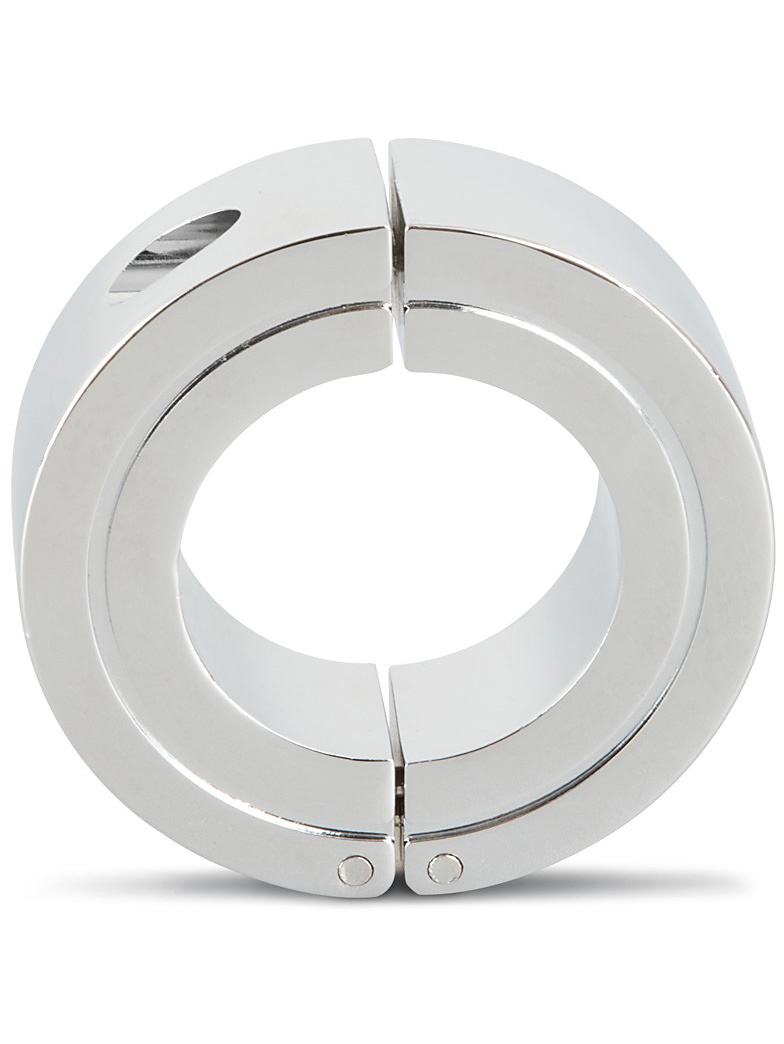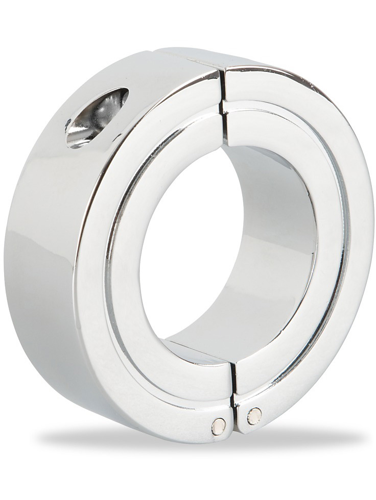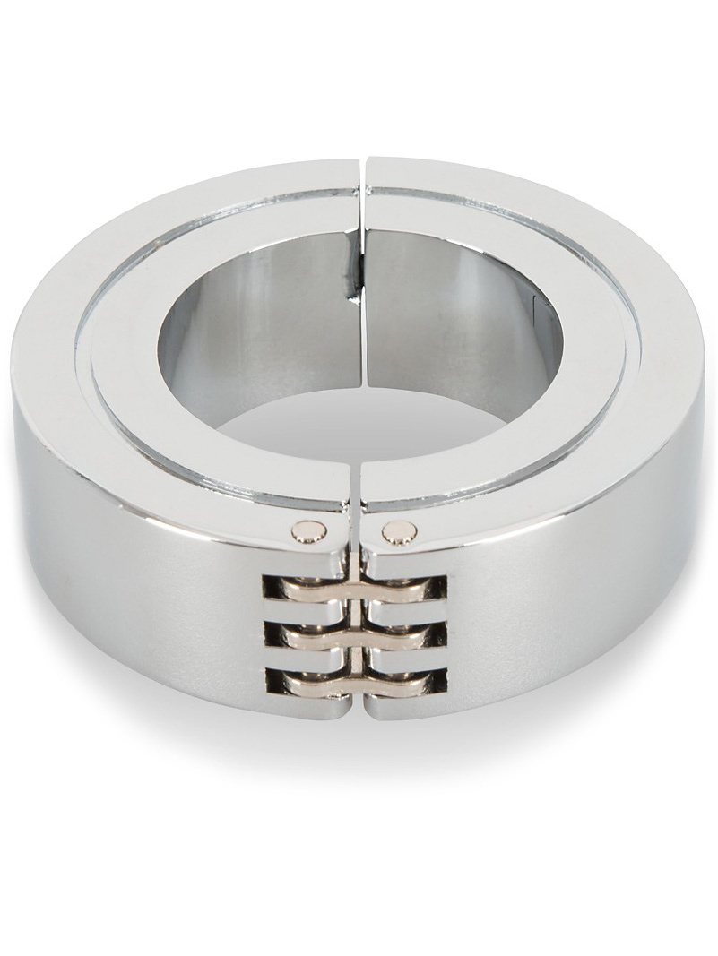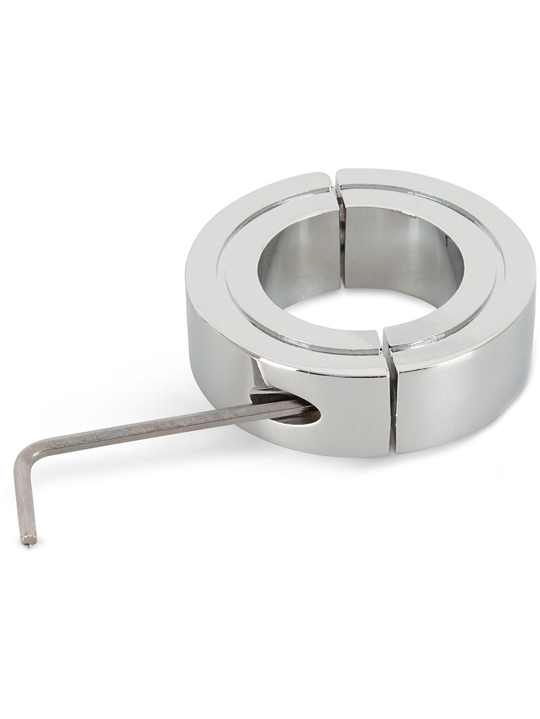 The ring weighs a full 273 grams and gives a clear feeling of downward pull and heaviness. It creates pressure around the scrotum that many find both intense and pleasurable. You simply open the ring, place it around the scrotum, and lock it together with the included Allen key. This can also be part of exciting power play if your partner takes control of the key and decides when the ring is removed.