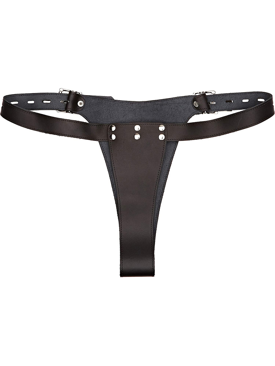 The harness is adjustable around the waist in seven steps with the help of holes and two padlocks. It fits waist measurements between 78 cm to 115 cm. The penis cage can also be easily removed from the harness if you would like to use it separately.