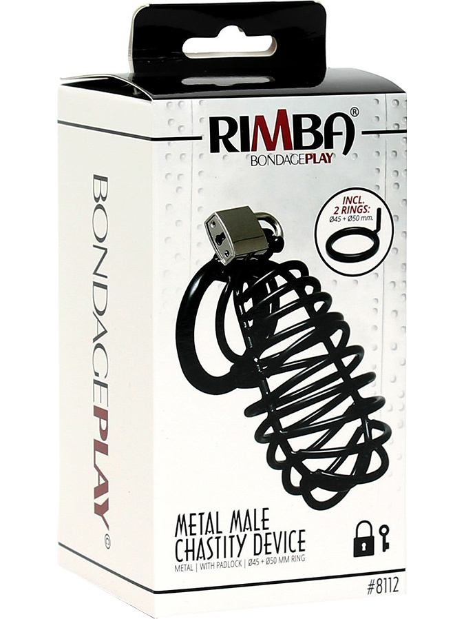 Thread his penis and scrotum through selected metal ring. Let the penis find its natural place within the chastity cage. You can then lock the ring and cage, making it impossible for him to remove it without a key. Padlock and two keys included.