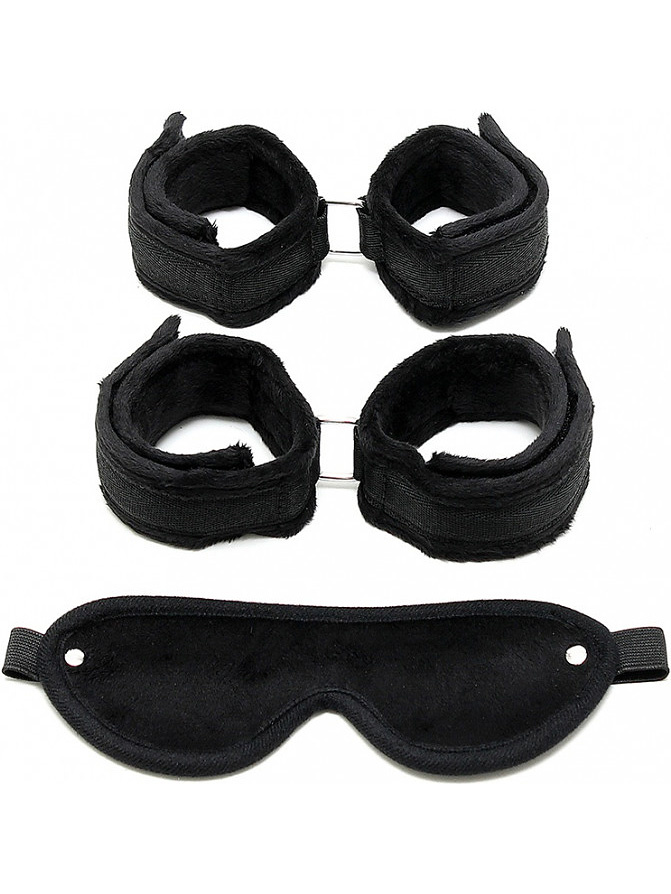 This is a soft and comfortable bondage kit that includes a blindfold and hand- and foot-cuffs. Perfect for exploring new games and increasing the excitement in the bedroom.