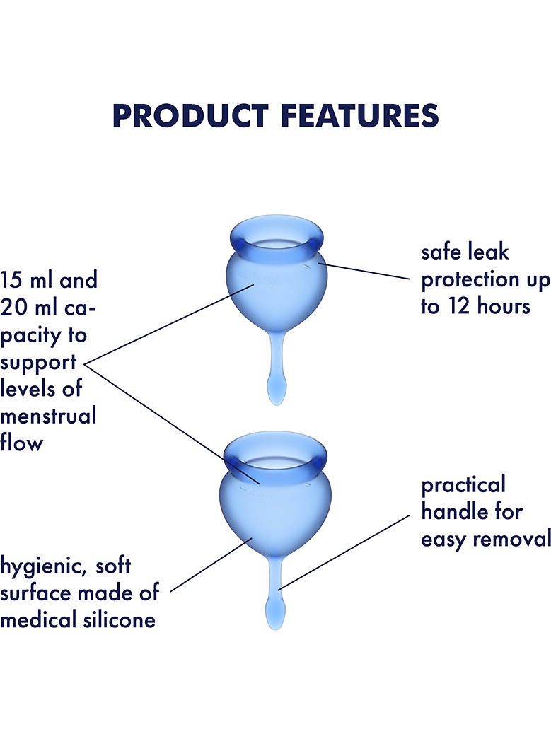 The famous brand Satisfyer has developed three different 2-packs of menstrual cups for hygienic and safe alternatives during menstruation: Feel Confident, Feel Secure and Feel Good.