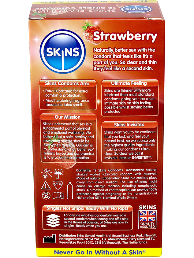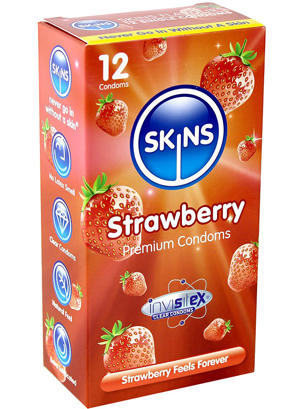 Skins Flavored, Strawberry - Delicious strawberry-flavor and safe sex!