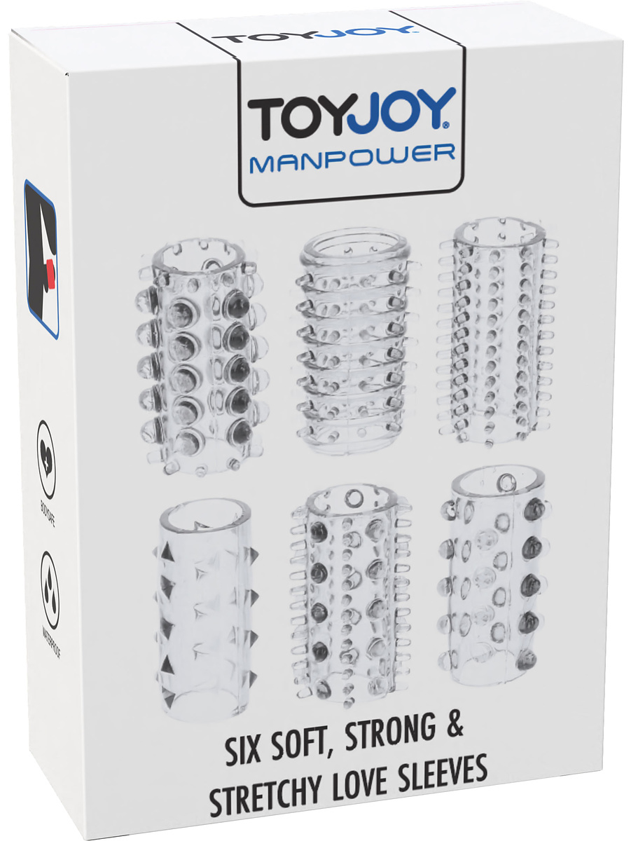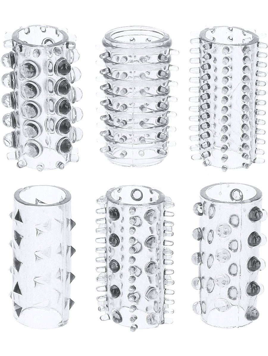 Do you want to heighten the sensation during sex and surprise your partner with extra stimulation? The Power Penis Sleeve Set contains six unique penis sleeves, all designed to provide a more intense experience for both of you.