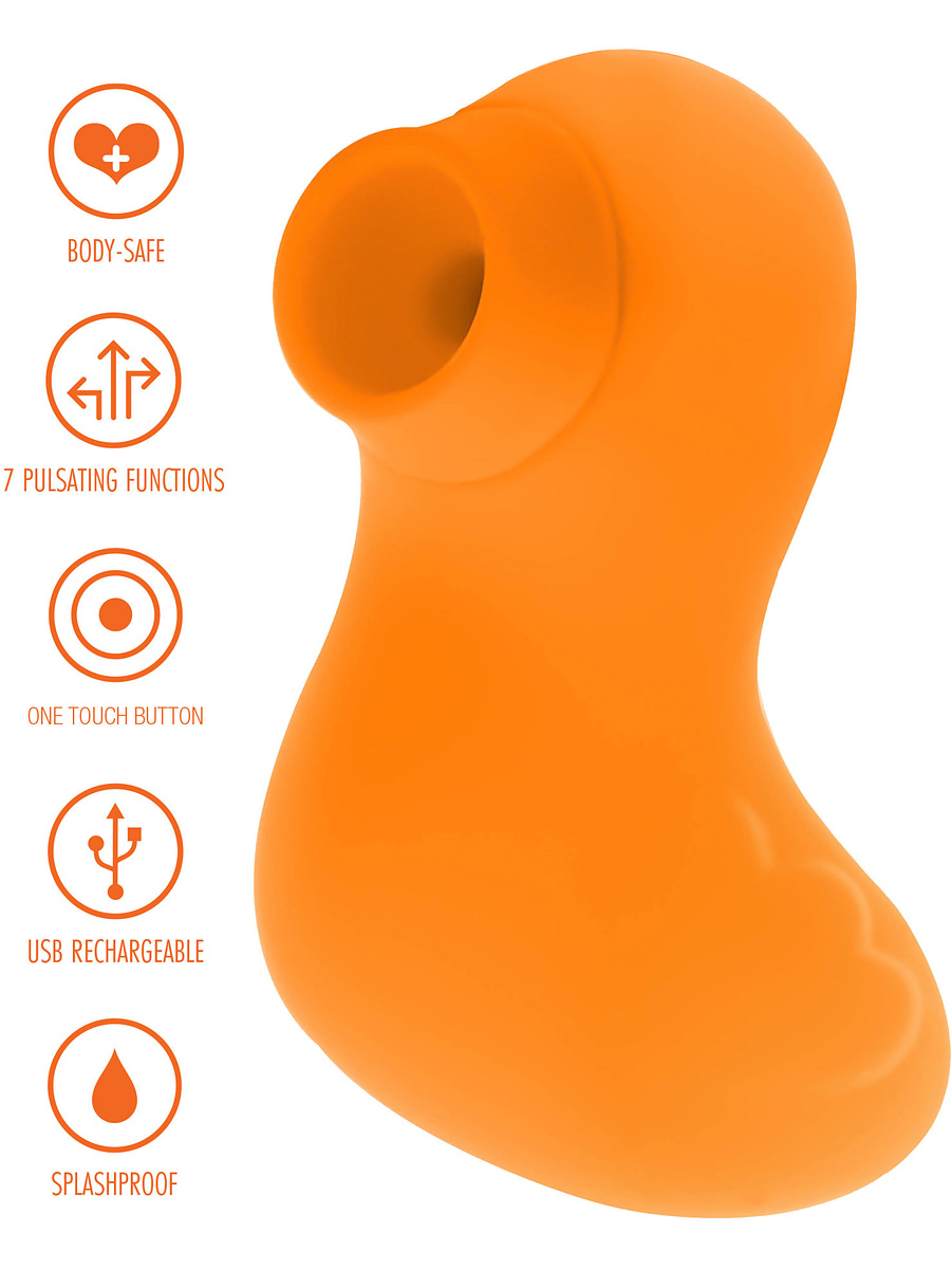 Sexy Sucking Duckface is a clitoral stimulator with soft, yet powerful, pulsating vibrations that will have you gasping for air as you reach the ultimate orgasm. It has a playful design similar to a bathing suit.