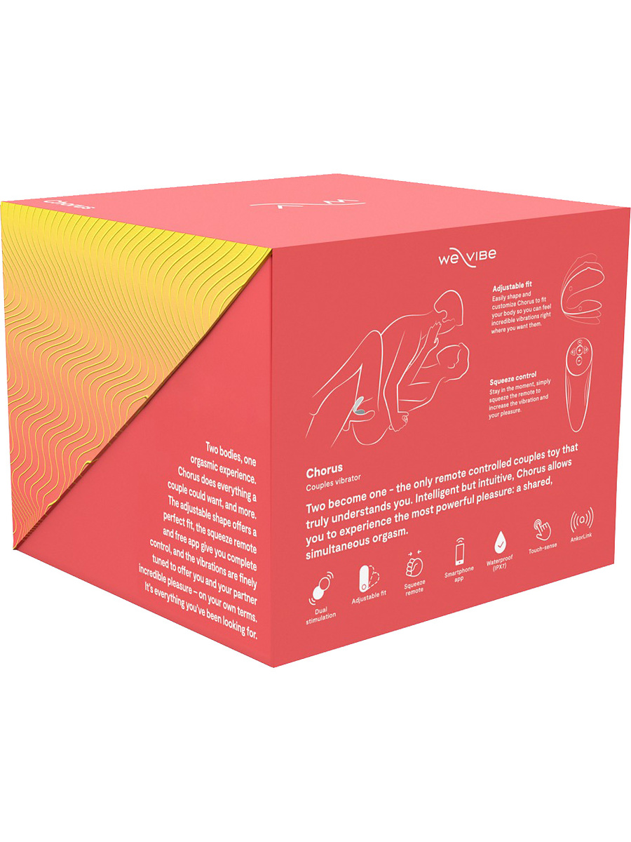Chorus takes you to a whole new level of sex. It is We-Vibe's most intuitive couple vibrator with an adjustable fit, touch-sensitive control and hands-free vibration that gives you both extra pleasure during penetrating sex.