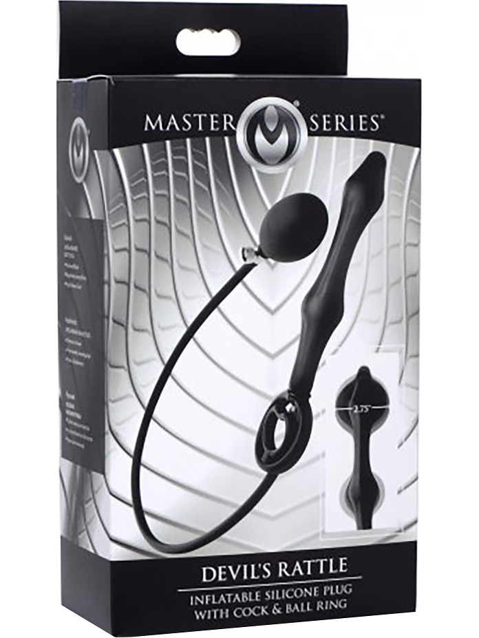 Master Series Devil's Rattle, Inflatable Plug with Cock & Ball Ring