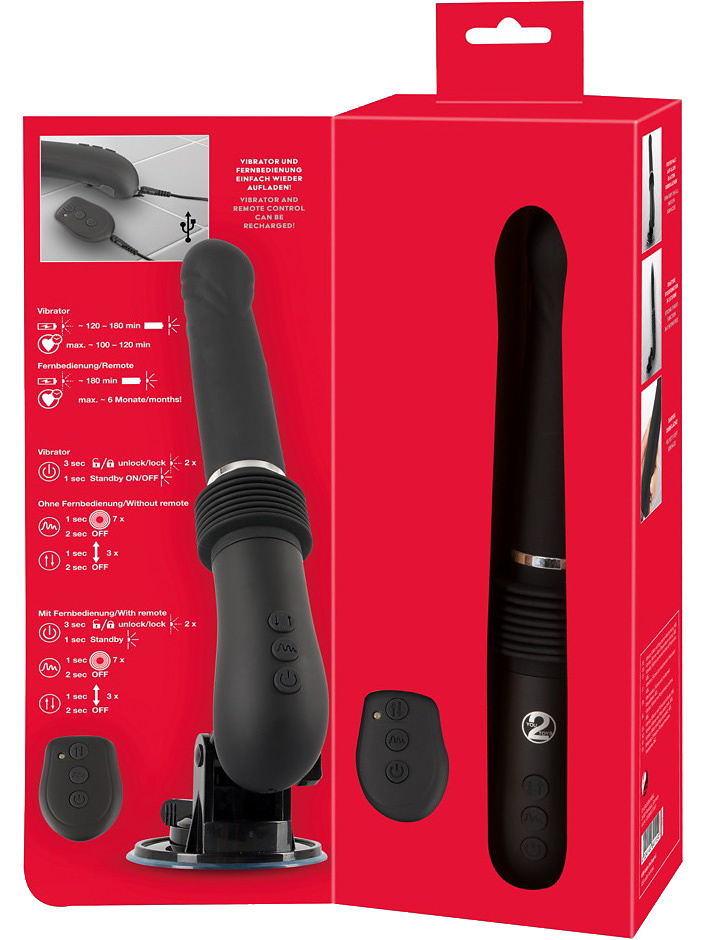 This is a portable and flexible sex machine with thrust-function (up to 6 cm) in three adjustable speeds. In addition to a penetrating function, it also delivers extremely pleasant vibrations (can be controlled separately), making it a real all-round toy. Choose between seven exciting vibration-modes.
