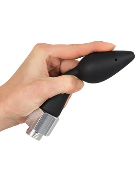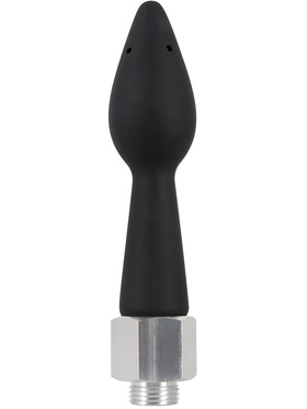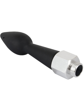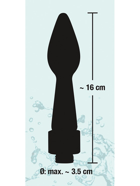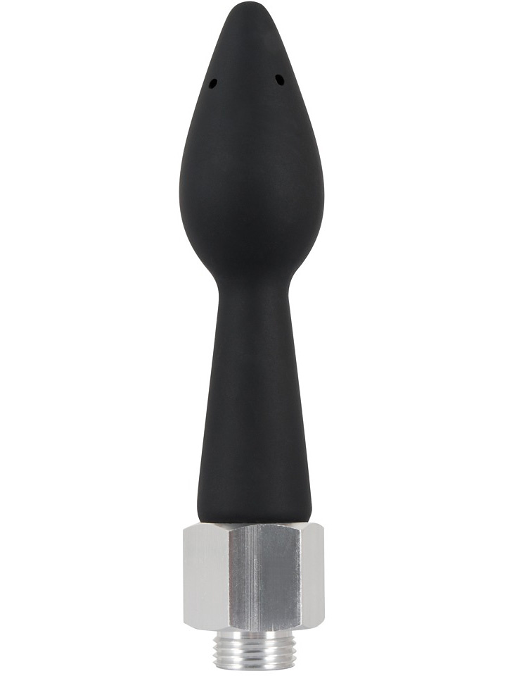 The shape of the nozzle allows for easy and comfortable insertion, while the small holes around the tip create an even, multidirectional water-flow that effectively cleanses the entire anal wall. Thanks to the soft silicone surface, penetration feels natural, making it easy to combine hygiene with foreplay. The lower part features a metal thread that fits easily onto a standard shower hose.