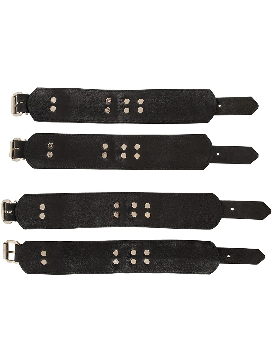 You can easily attach the handcuffs and footcuffs using the four carabiners on each of the straps. The shackles are made of robust leather and have buckles so you can easily adjust the fit.